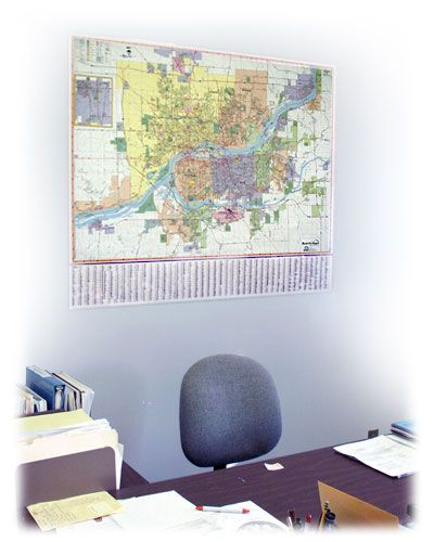nal Commission. The map covers the metropolitan area and reflects changes to streets, corporate boundaries, landmarks, and other features that have occurred in the last four to five years. Two maps are available: a wall-sized (51” x 42”) full-color map on heavy paper; and a smaller (40” x 28”) color, folded version, which includes insets for the outlying communities of Aledo, Blue Grass, Clinton, Cordova, DeWitt, Eldridge, Geneseo, Kewanee, Muscatine, Port Byron, Princeton, and Walcott. Both maps are fully indexed for streets and places of interest.