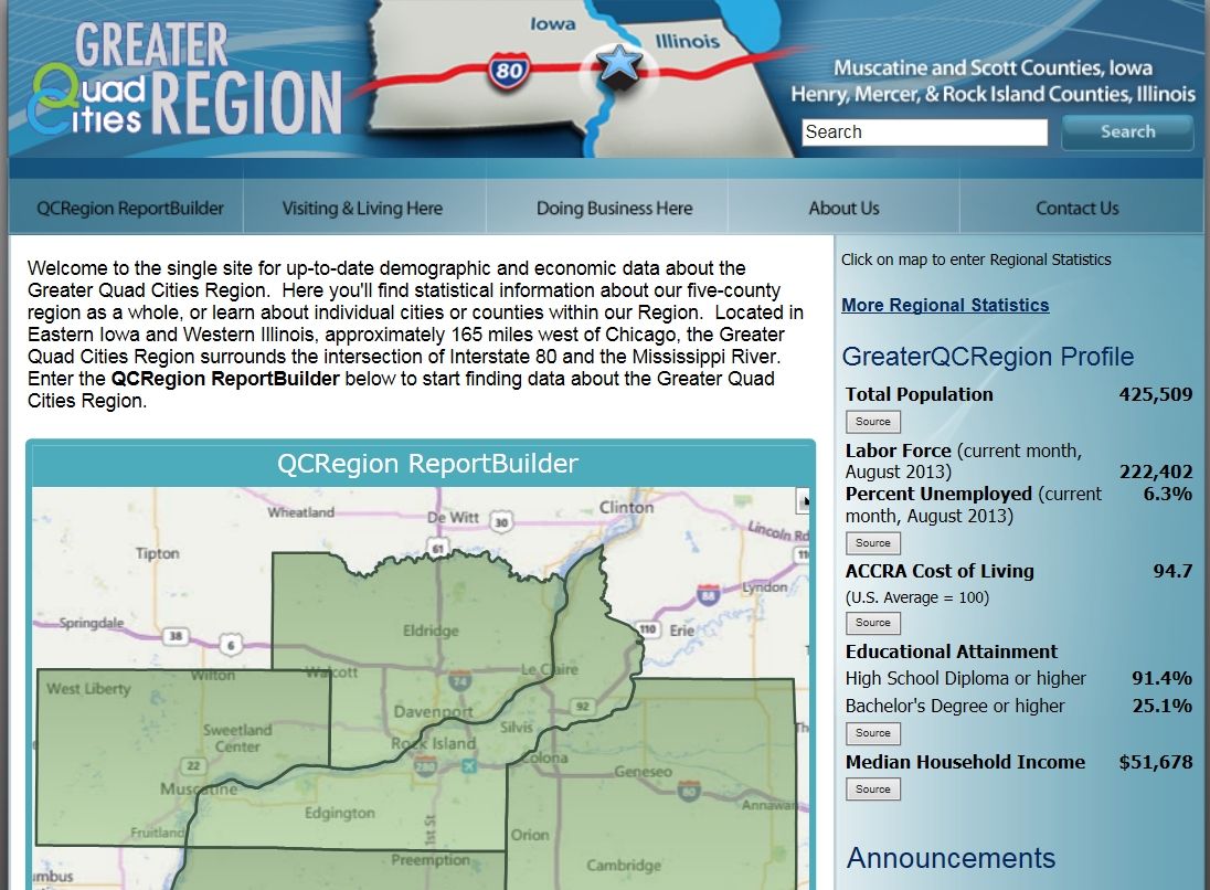 January 25, 2017 – Lisa Miller, Data/GIS Director, reported that since its launch in 2010, the web-based data portal for our region, www.GreaterQCRegion.org, has housed data for the five-county region, Illinois and Iowa, and the U.S. Users can select an area and get a quick report with key indicators or dig deeper into the data and get detailed reports or time series for these data.